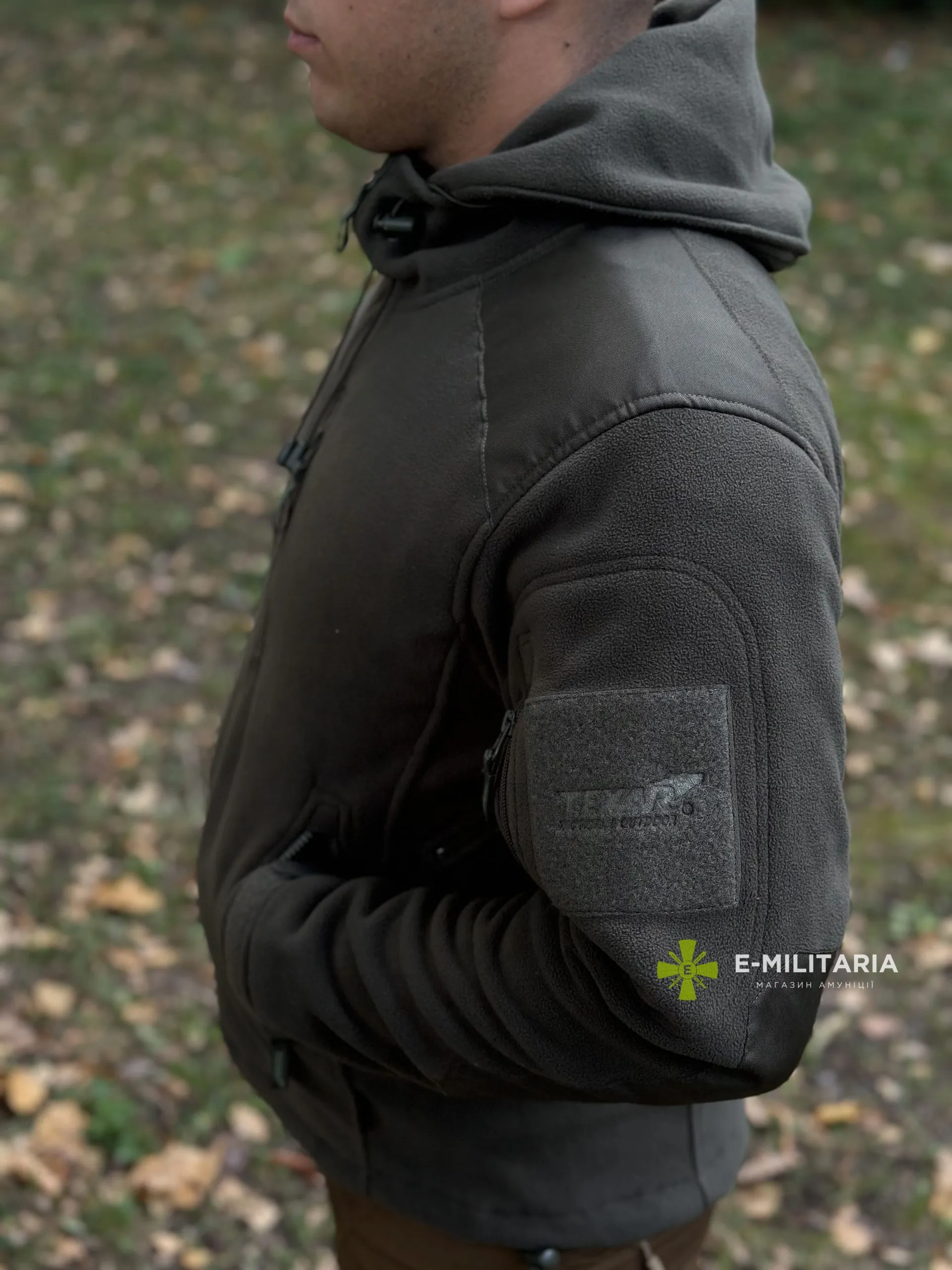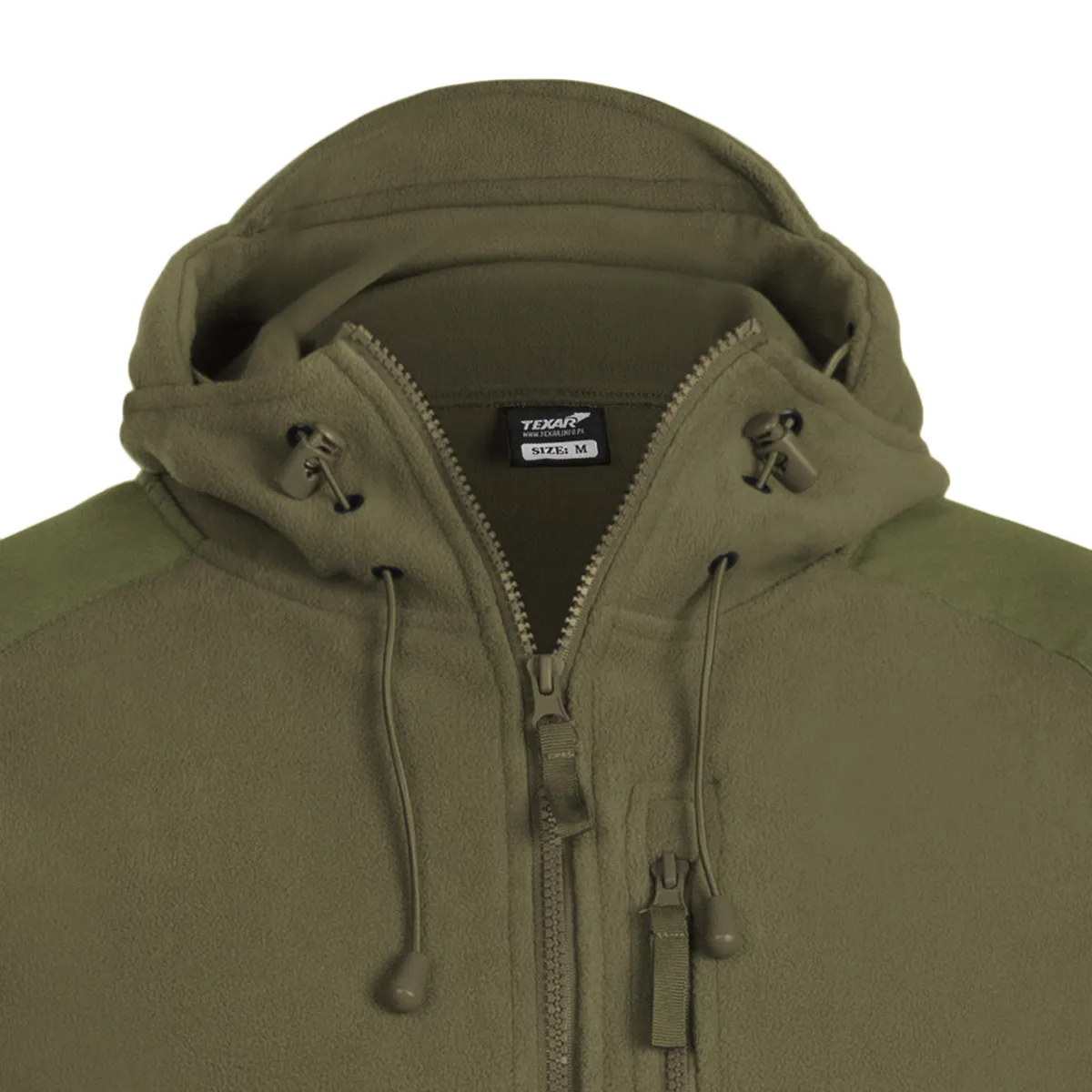 Тепла, м’яка флісова куртка TEXAR HUSKY з великим капюшоном і козирком, застібається на металеву блискавку.