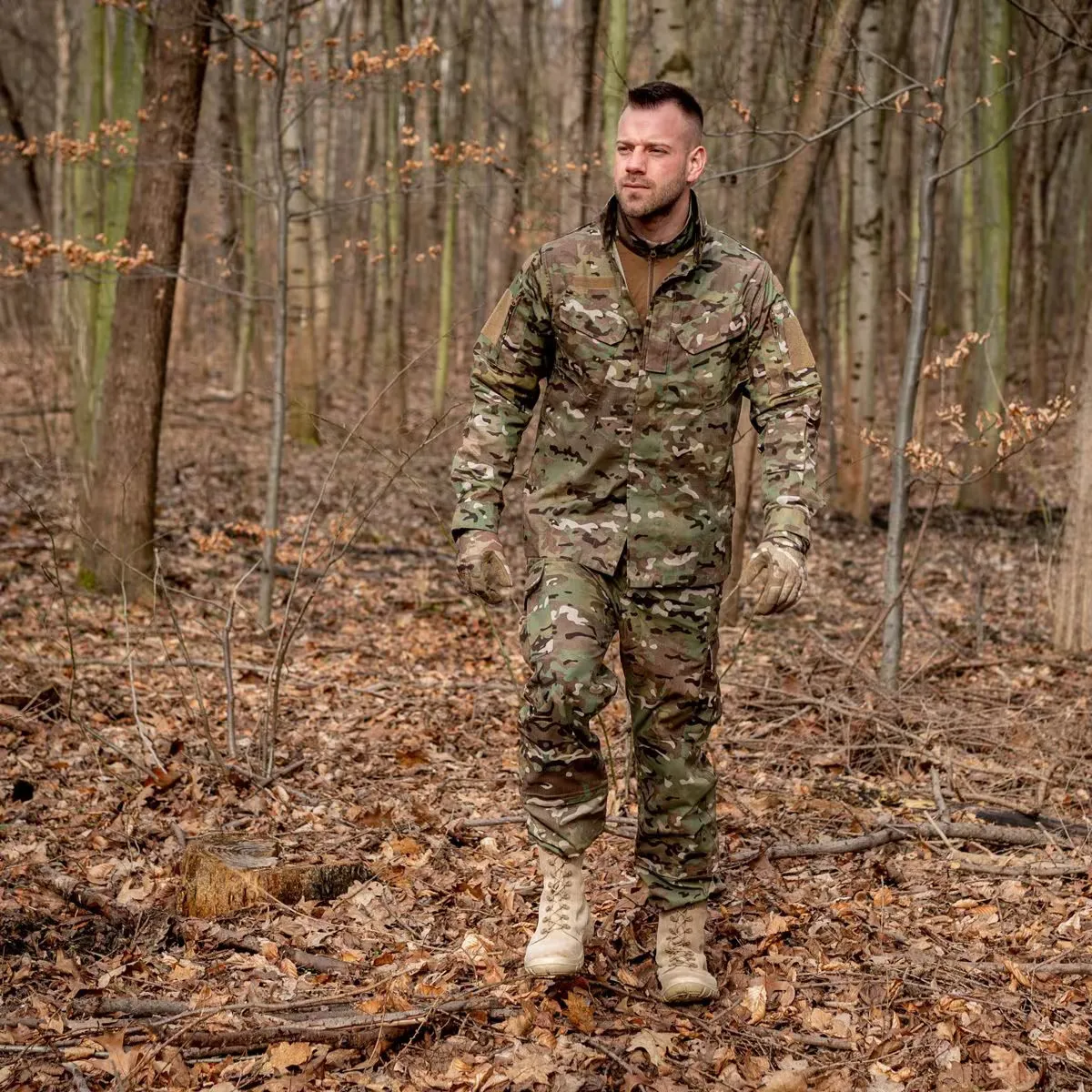 Камуфляжні штани Texar WZ10 Ripstop з тканини полікоттон (поліестер і бавовна) в кольорі, схожому на камуфляж MultiCam. Матеріал легкий, міцний і приємний на дотик. У моделі використовується плетіння RipStop, що підвищує стійкість матеріалу до розривів.