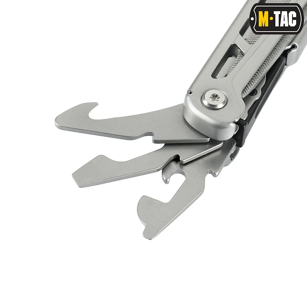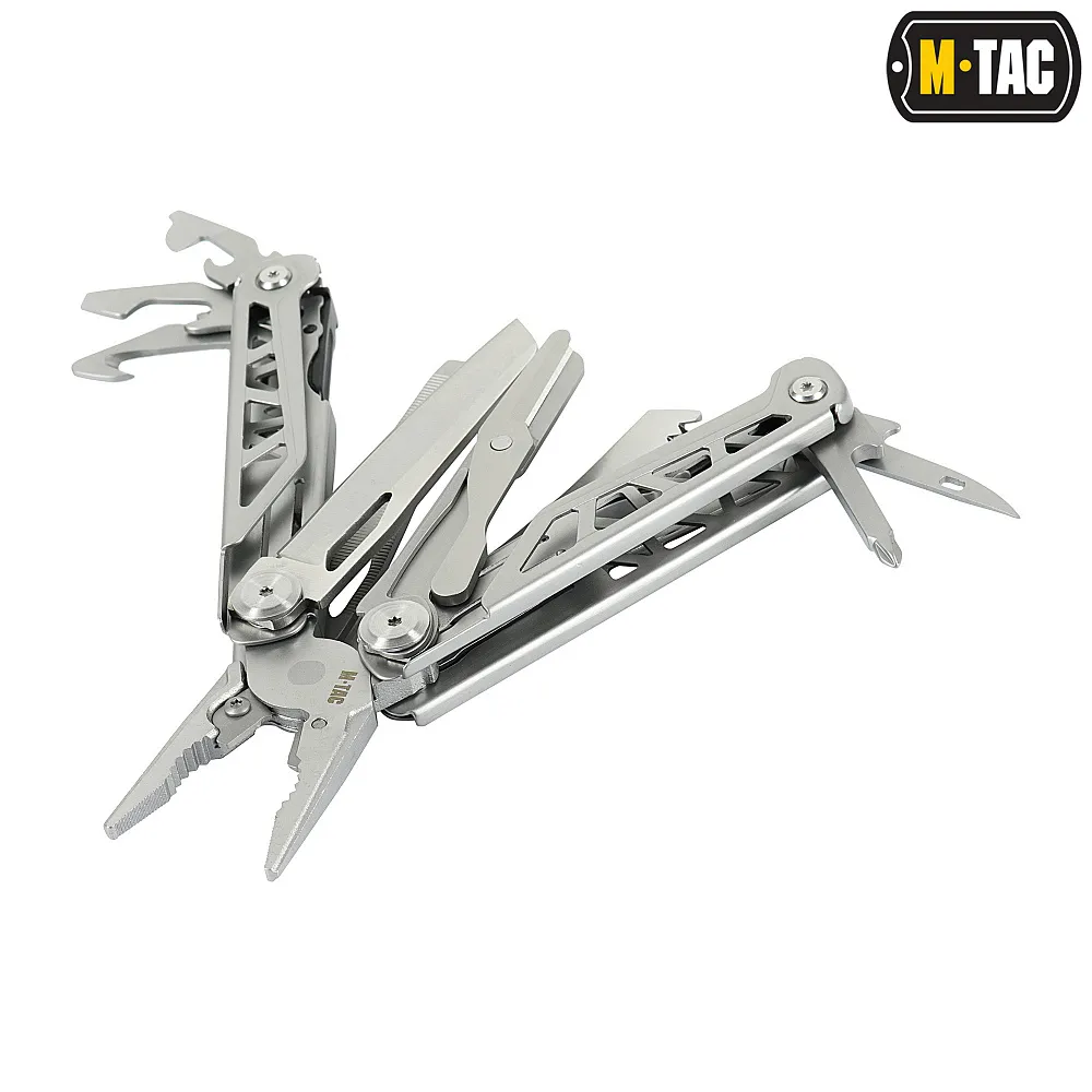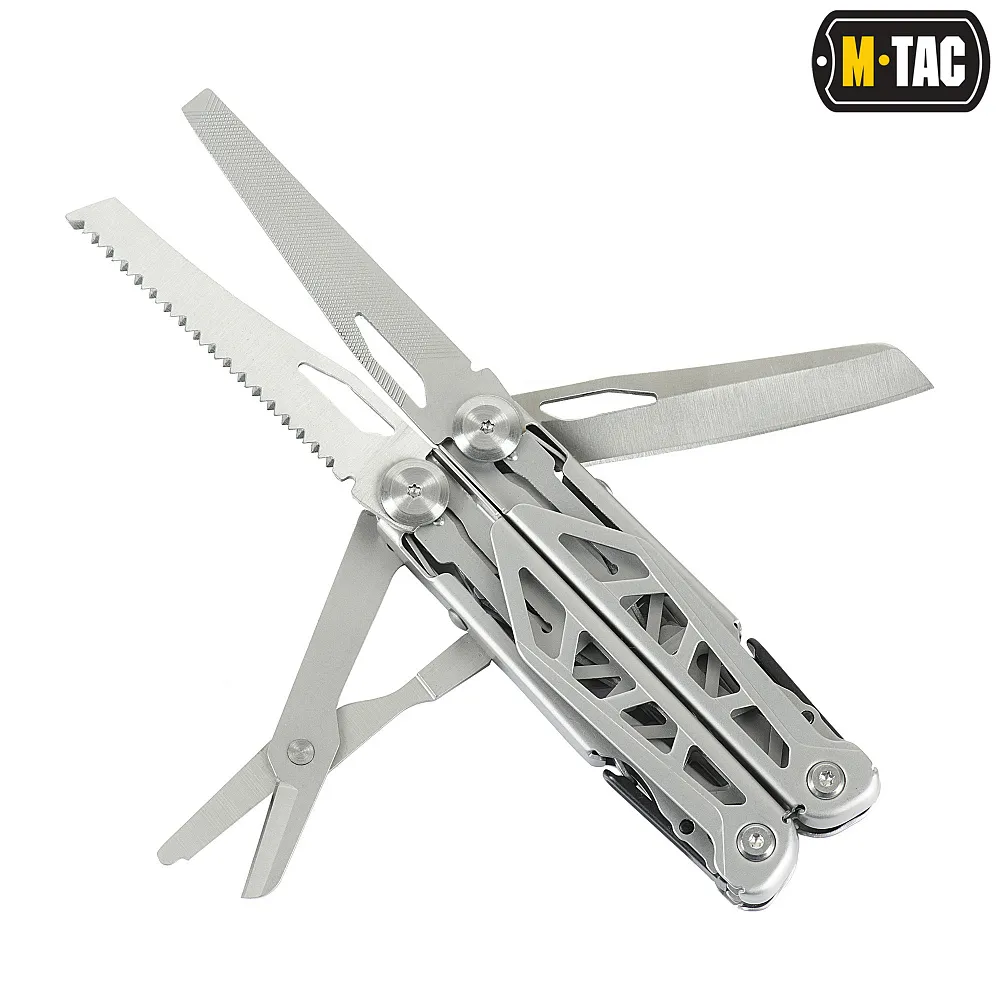 Мультитул має багато корисних інструментів: ніж, плоскогубці, викрутку, консервний ніж, відкривачку для пляшок, стропоріз, ножівку, напилок, ножиці та шило. Всі елементи щільно фіксуються у відкритому та закритому положенні. Завдяки ергономічним формам, мультитул відмінно лежить в руці та не зісковзує під час роботи.