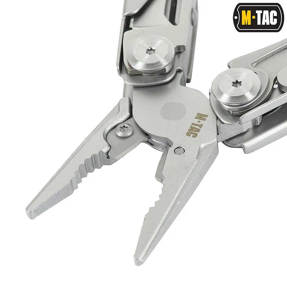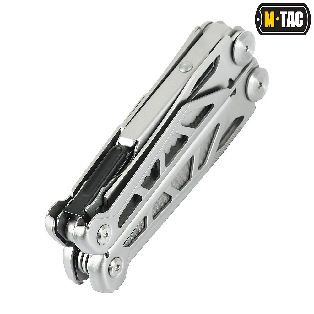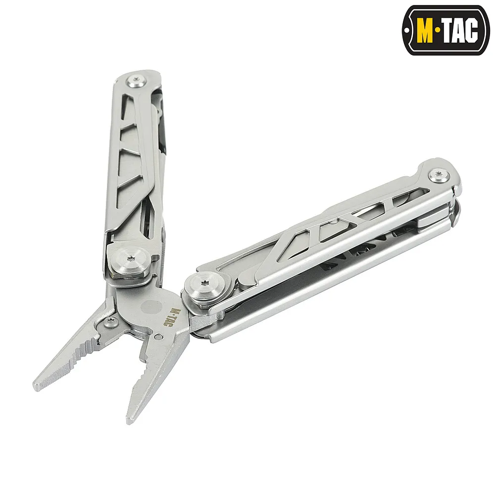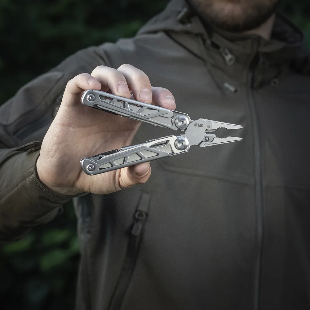 Мультитул має багато корисних інструментів: ніж, плоскогубці, викрутку, консервний ніж, відкривачку для пляшок, стропоріз, ножівку, напилок, ножиці та шило. Всі елементи щільно фіксуються у відкритому та закритому положенні. Завдяки ергономічним формам, мультитул відмінно лежить в руці та не зісковзує під час роботи.
