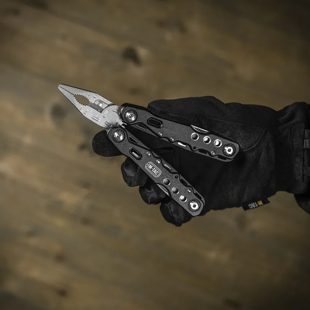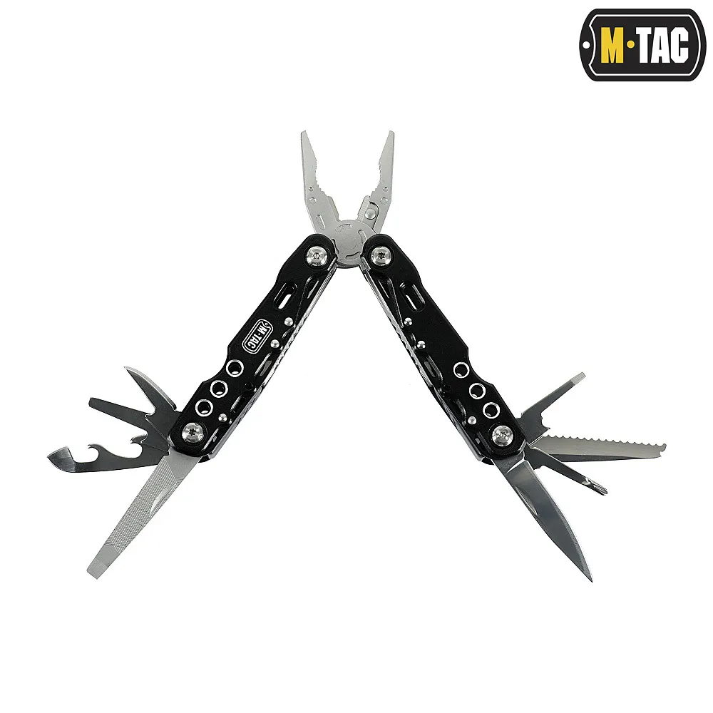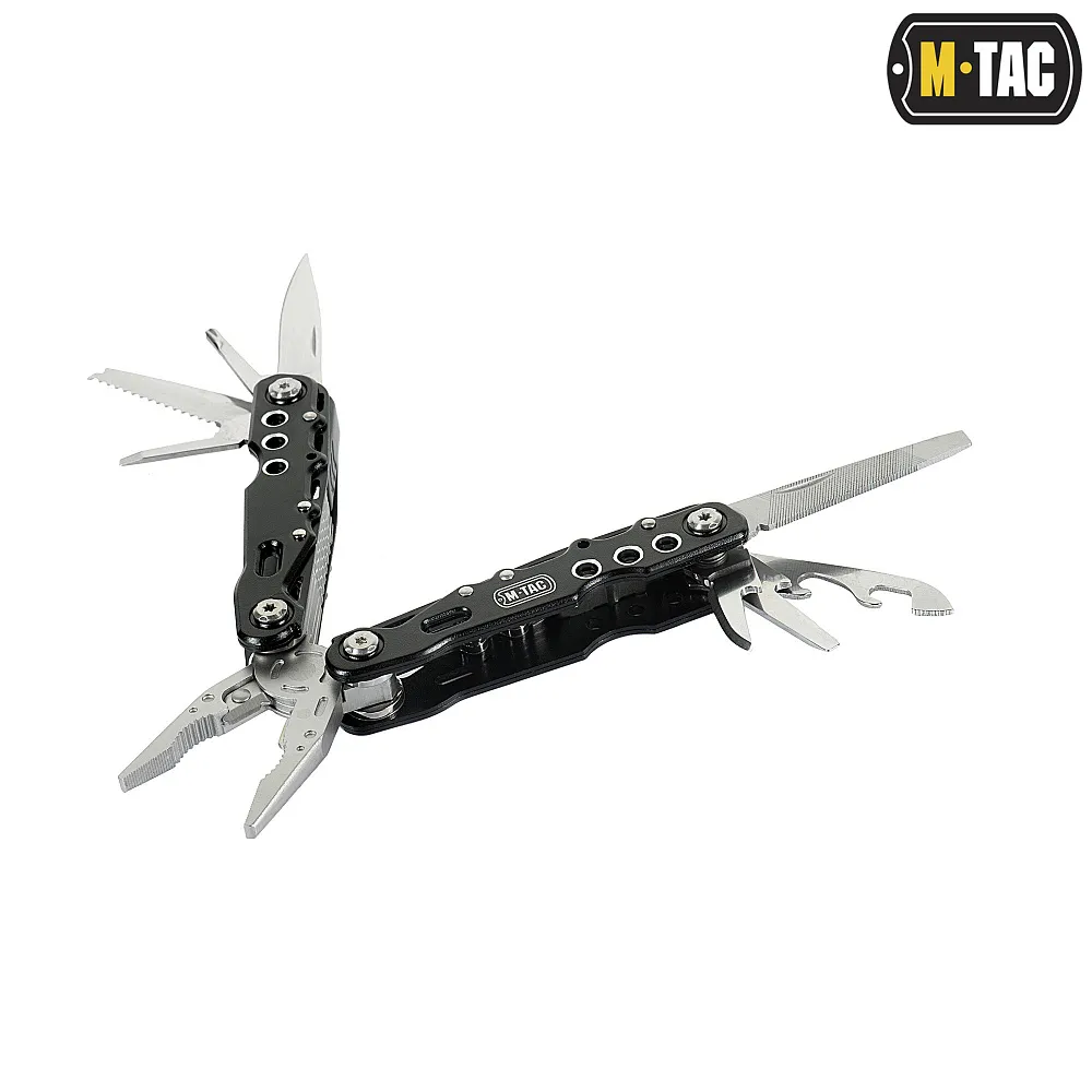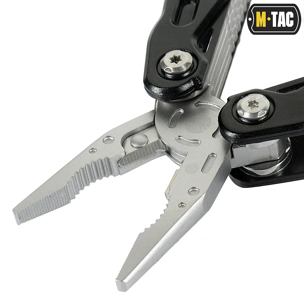 Мультитул має багато корисних інструментів: ніж, плоскогубці з пристосуванням для зняття ізоляції, гострогубці, хрестоподібну викрутку, велику плоску викрутку, маленьку плоску викрутку, консервний ніж, відкривачку для пляшок і банок, ножівку, напилок і шило. Всі елементи щільно фіксуються у відкритому та закритому положенні. Завдяки ергономічним формам, мультитул відмінно лежить в руці та не зісковзує під час роботи. На рукоятці нанесено стильний логотип бренду.