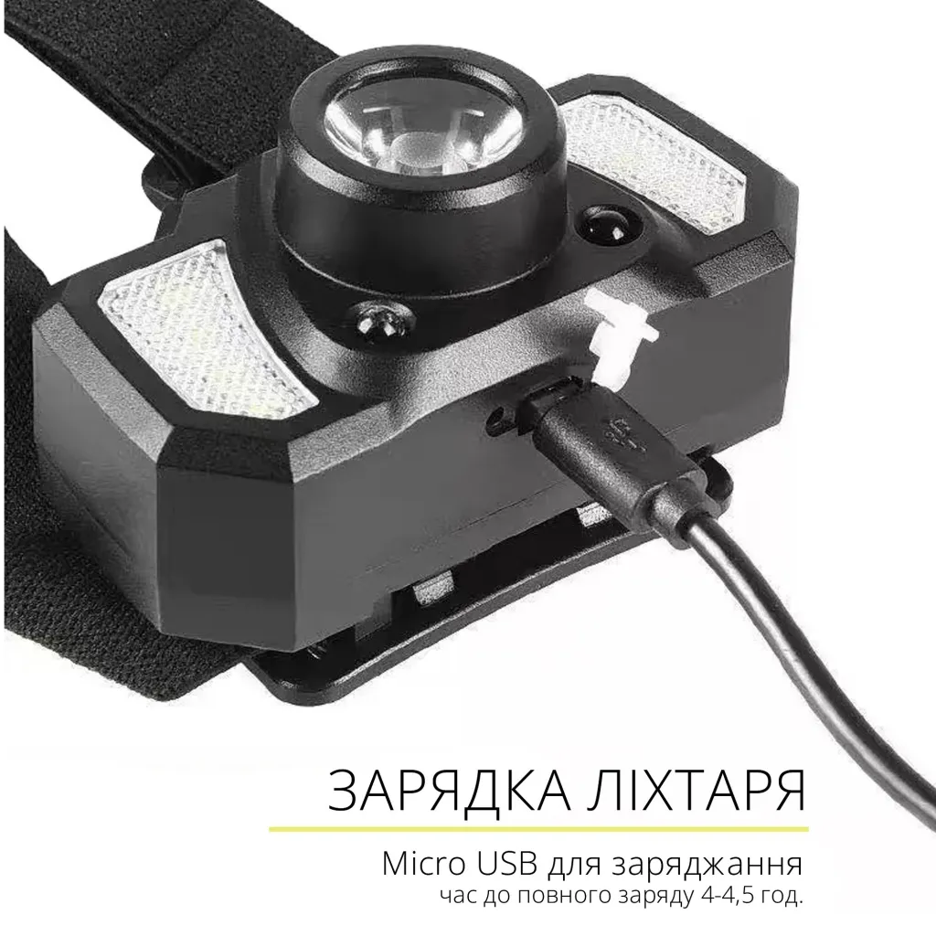 Налобний акумуляторний ліхтар TIROSS із вологозахистом (чорний)