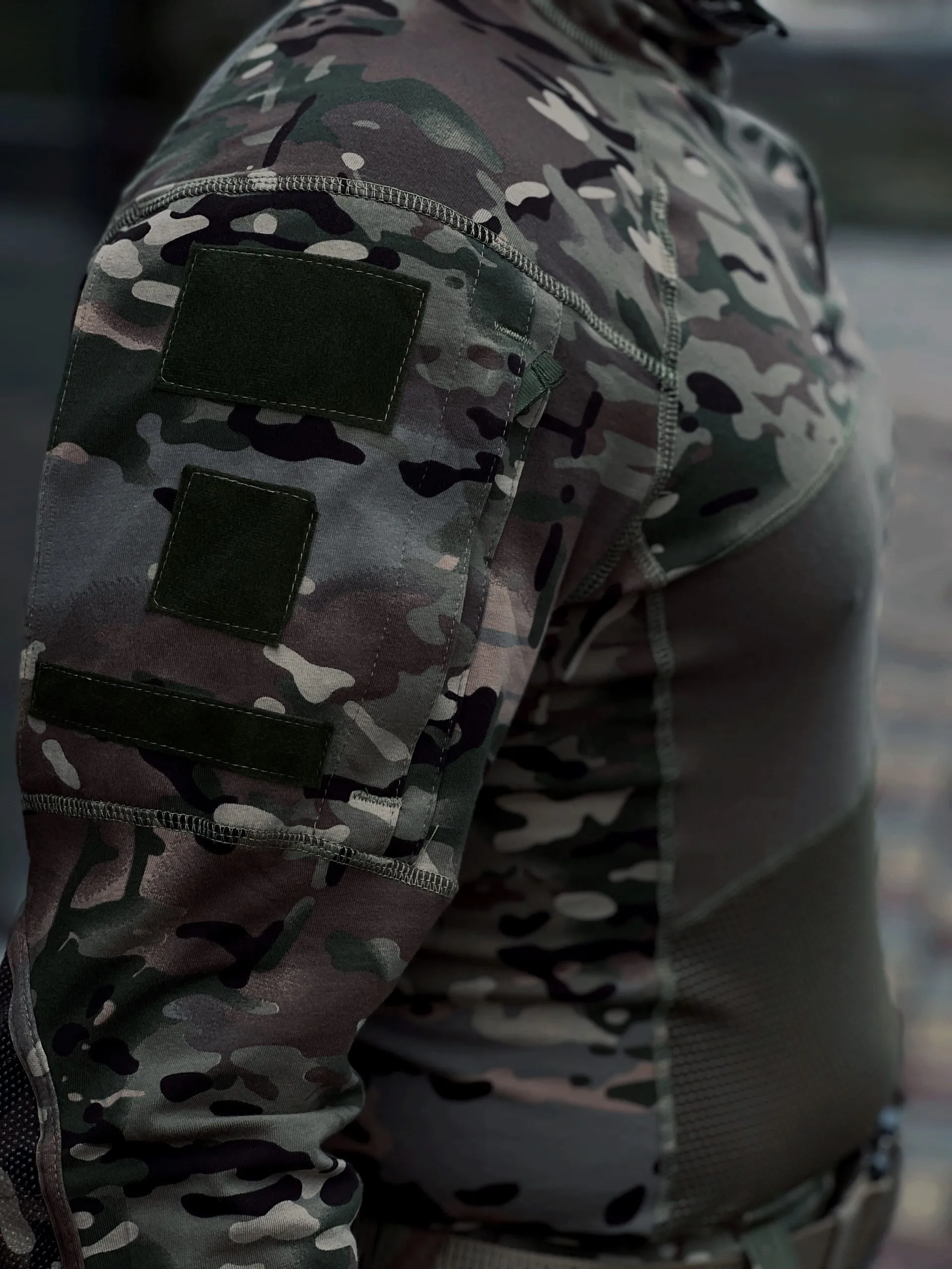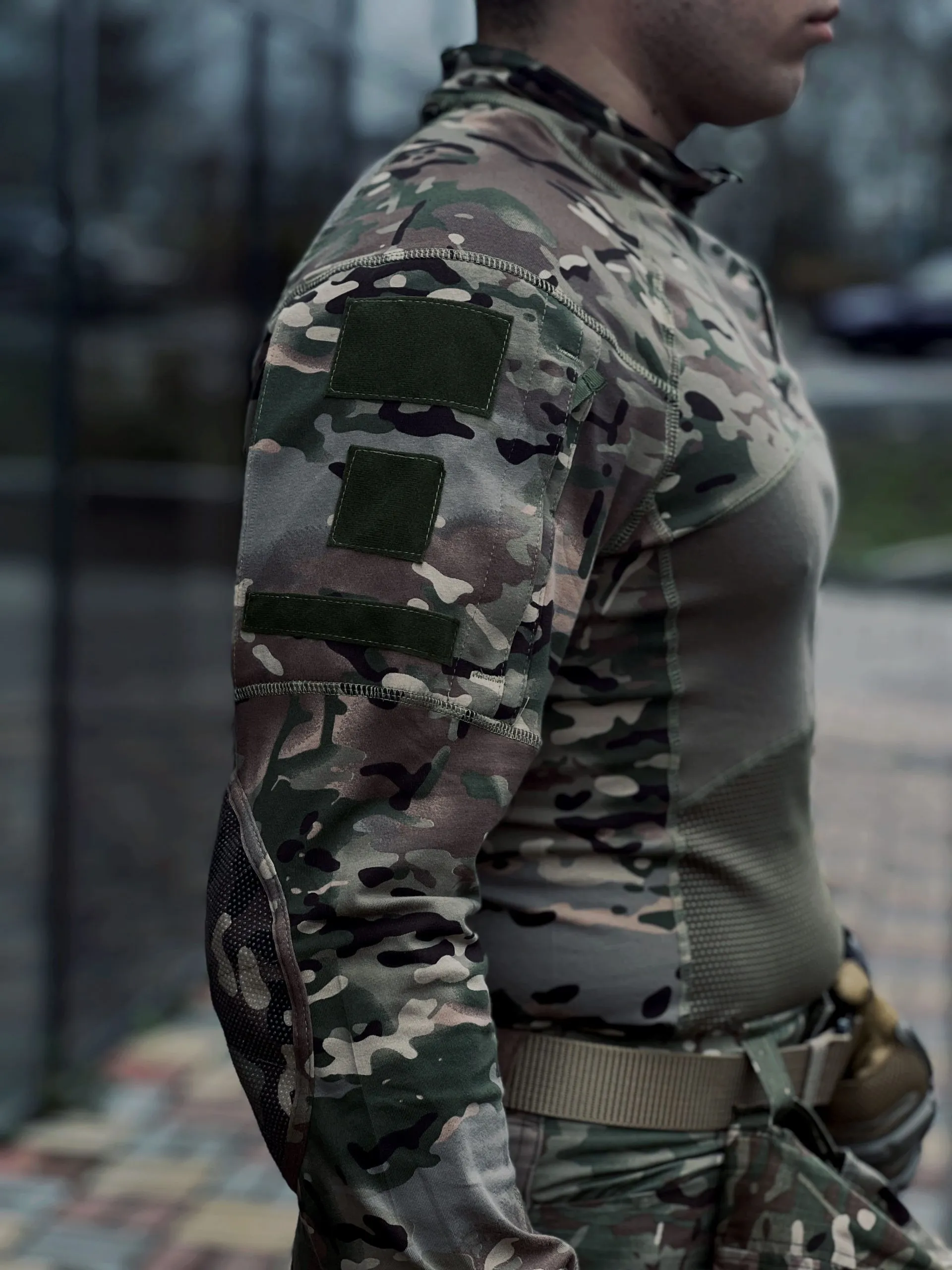 Тактична бойова сорочка убакс пошита із еластичного дихаючого матеріалу бавовна+спандекс. Сорочка ідеально прилягає до тіла та рівномірно виводить вологу. Сорочка має дві плечові кишені на замку, велкро панелі на рукавах та додаткове послення та захист стиранення на локтях. Ідеально пасує для носіння під плитоноски та бронижелете у теплу та жарку погоду.